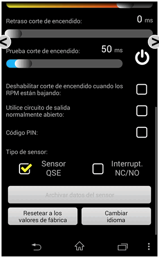 Es posible ajustar la sensibilidad del sensor de la palanca de cambio; la velocidad (demora) y la duración del corte de encendido a través del app en el móvil para acomodarlos a la moto y a la conducción.